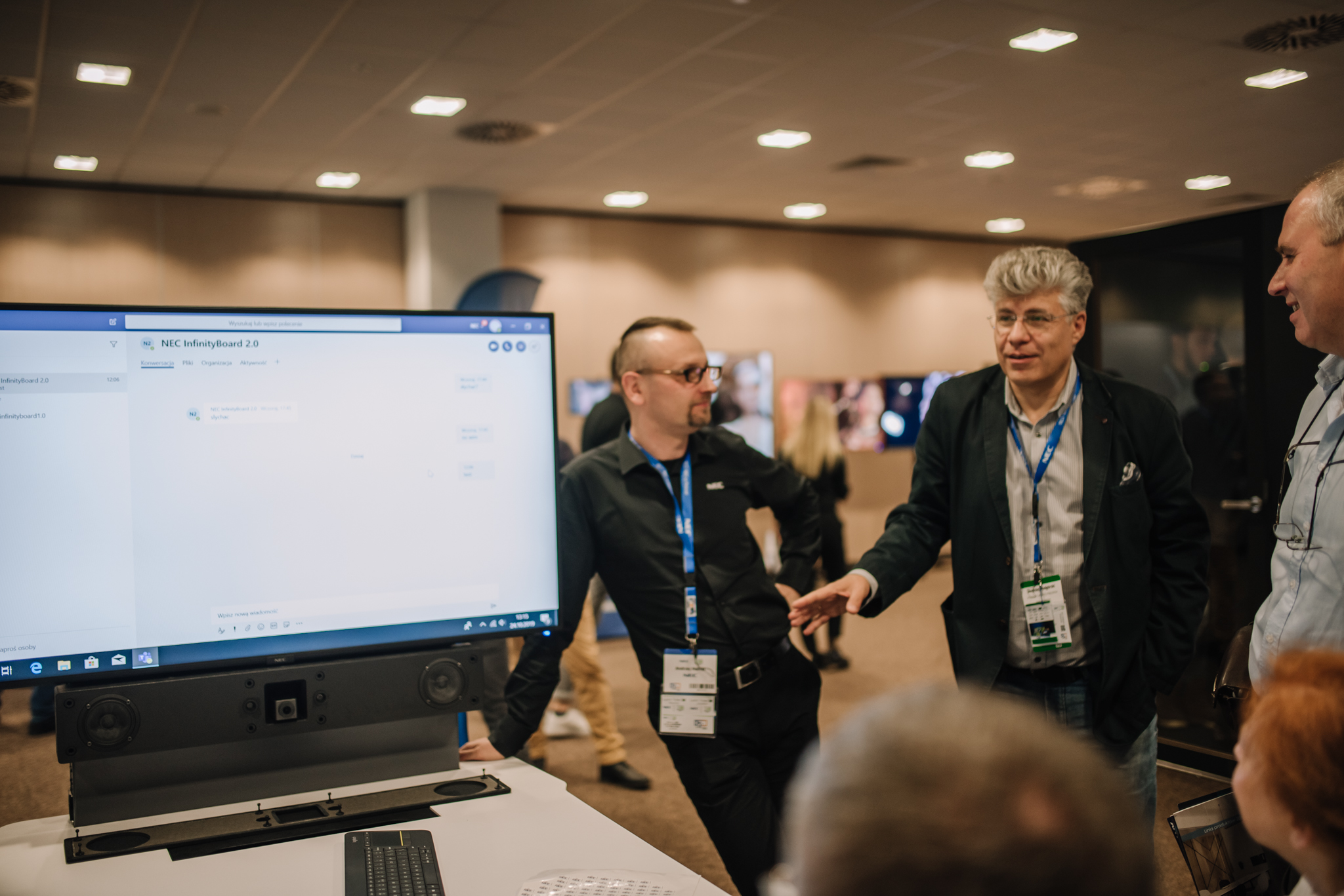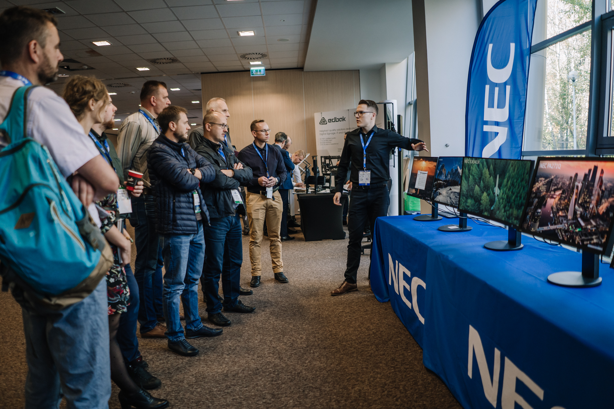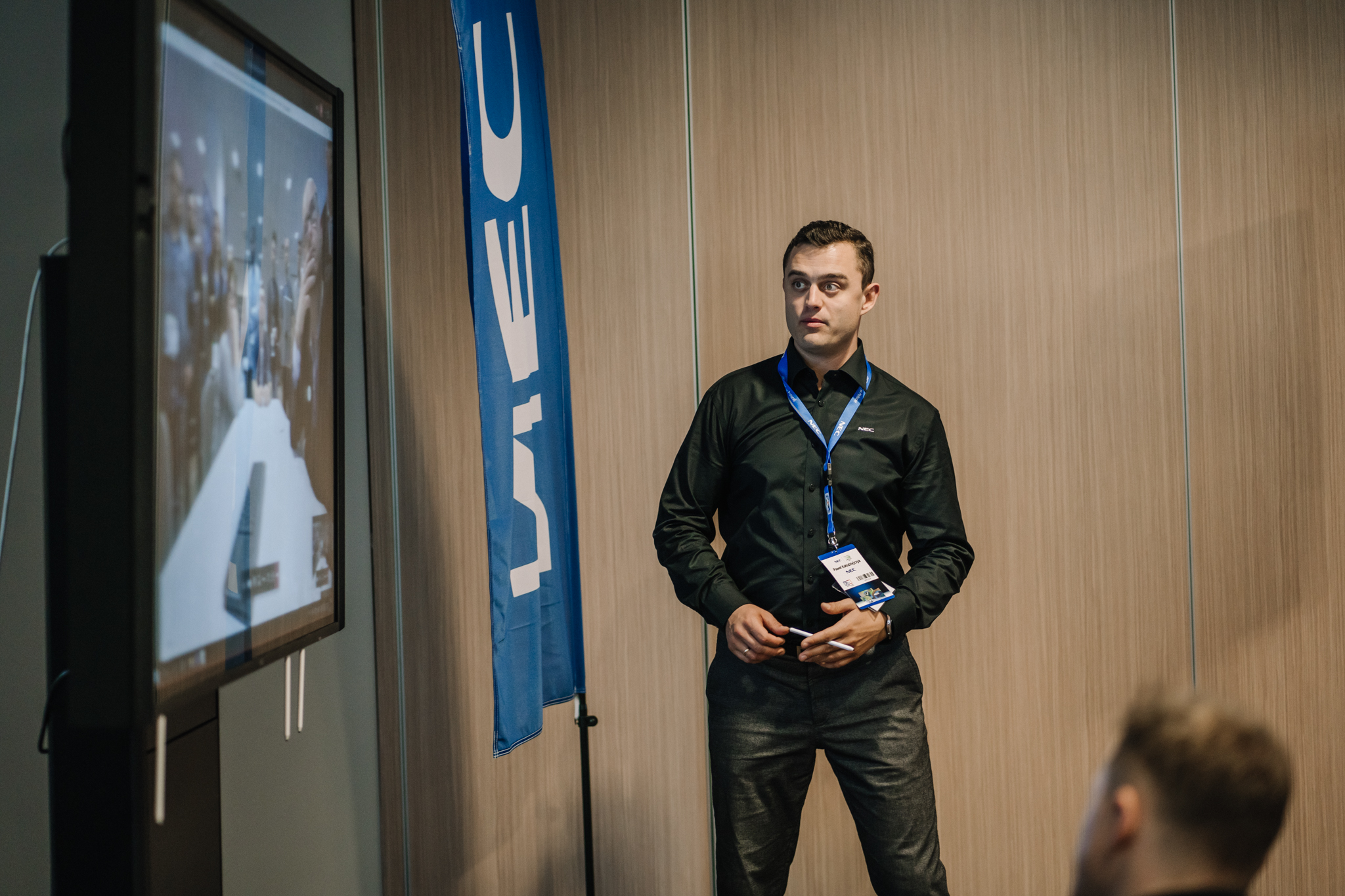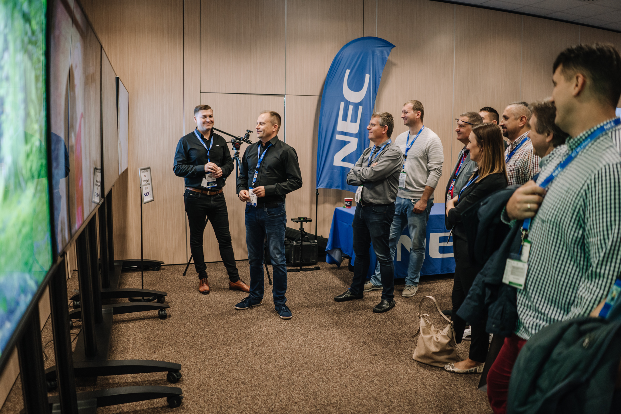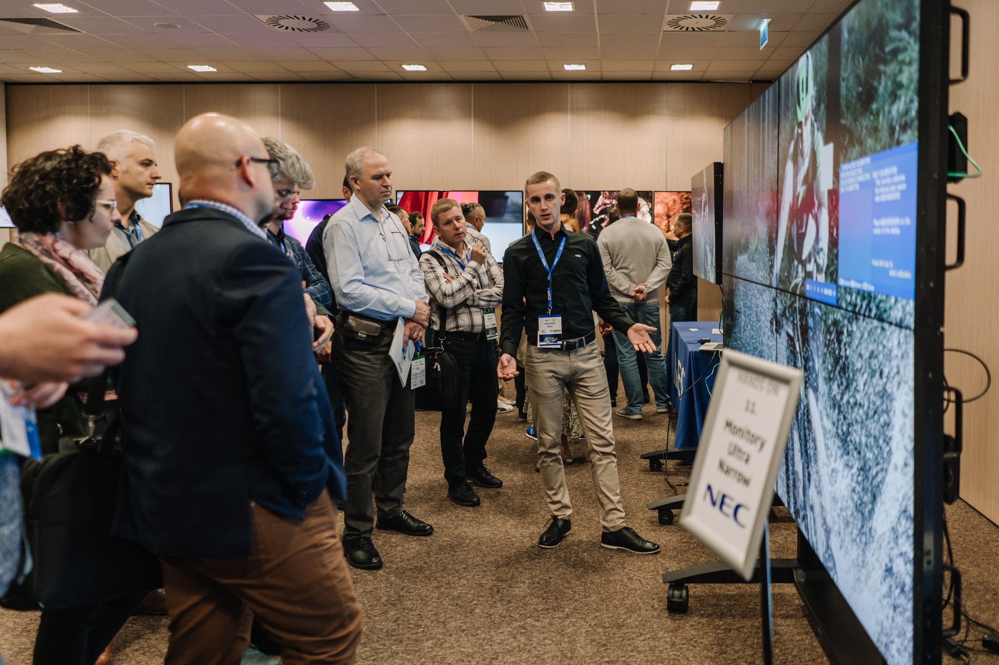 Podczas konferencji NEC Display Solutions zaprezentował szerokie portfolio rozwiązań dedykowanych dla sektora AV i rynku meeting rooms, bazujących na monitorach, projektorach oraz produktach LED. Wśród nowości na szczególną uwagę zasługują: seria monitorów interaktywnych CB, nowy InfinityBoard 2.1 wyposażony w kamerę Huddly IQ, monitory do budowy ścian wideo z automatyczną kalibracją kolorymetryczną i niezwykle wąską ramką ekranu wynoszącą zaledwie 0.44mm oraz projektory laserowe LCD z opatentowanym, szczelnym silnikiem światła. Dodatkowo zaprezentowane zostało oprogramowanie ProAssist pozwalające na bardzo szczegółową kontrolę instalacyjnych projektorów NEC oraz ich adjustację kolorymetryczną – to szczególnie ciekawa nowość, której poświęcono osobny warsztat Hands On. Uczestnicy mogli zobaczyć również ekran wideo oparty o moduły LED p1.5 oraz cały przekrój monitorów wielkoformatowych NEC.
