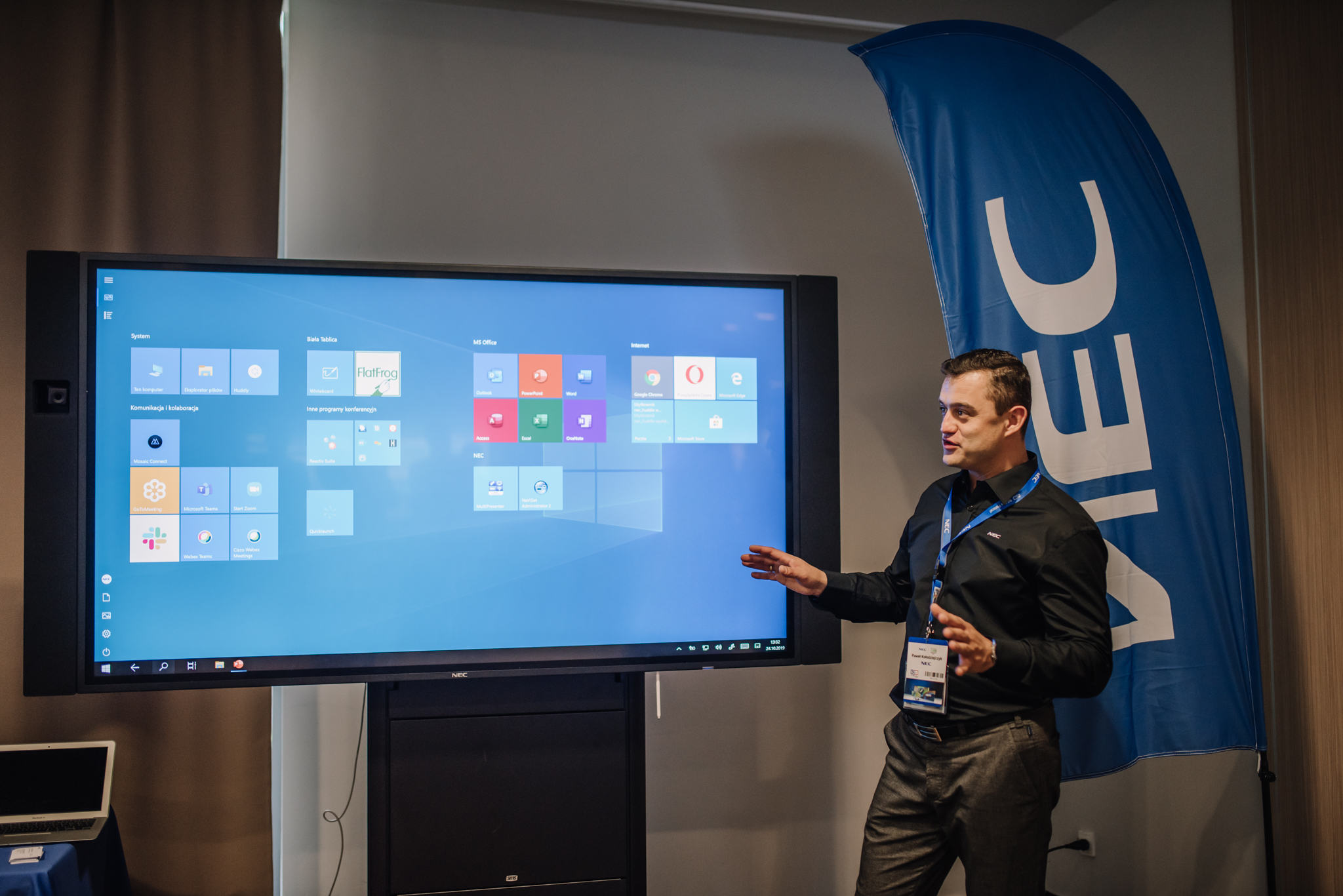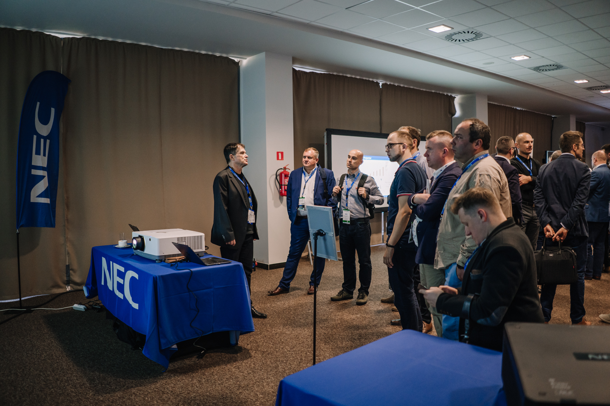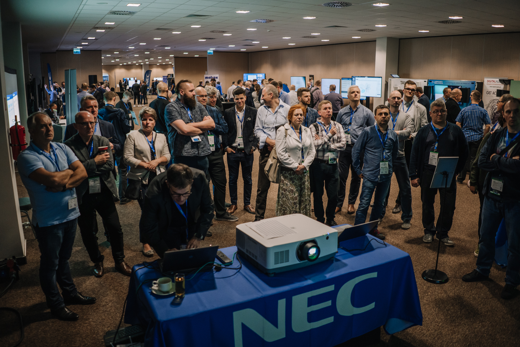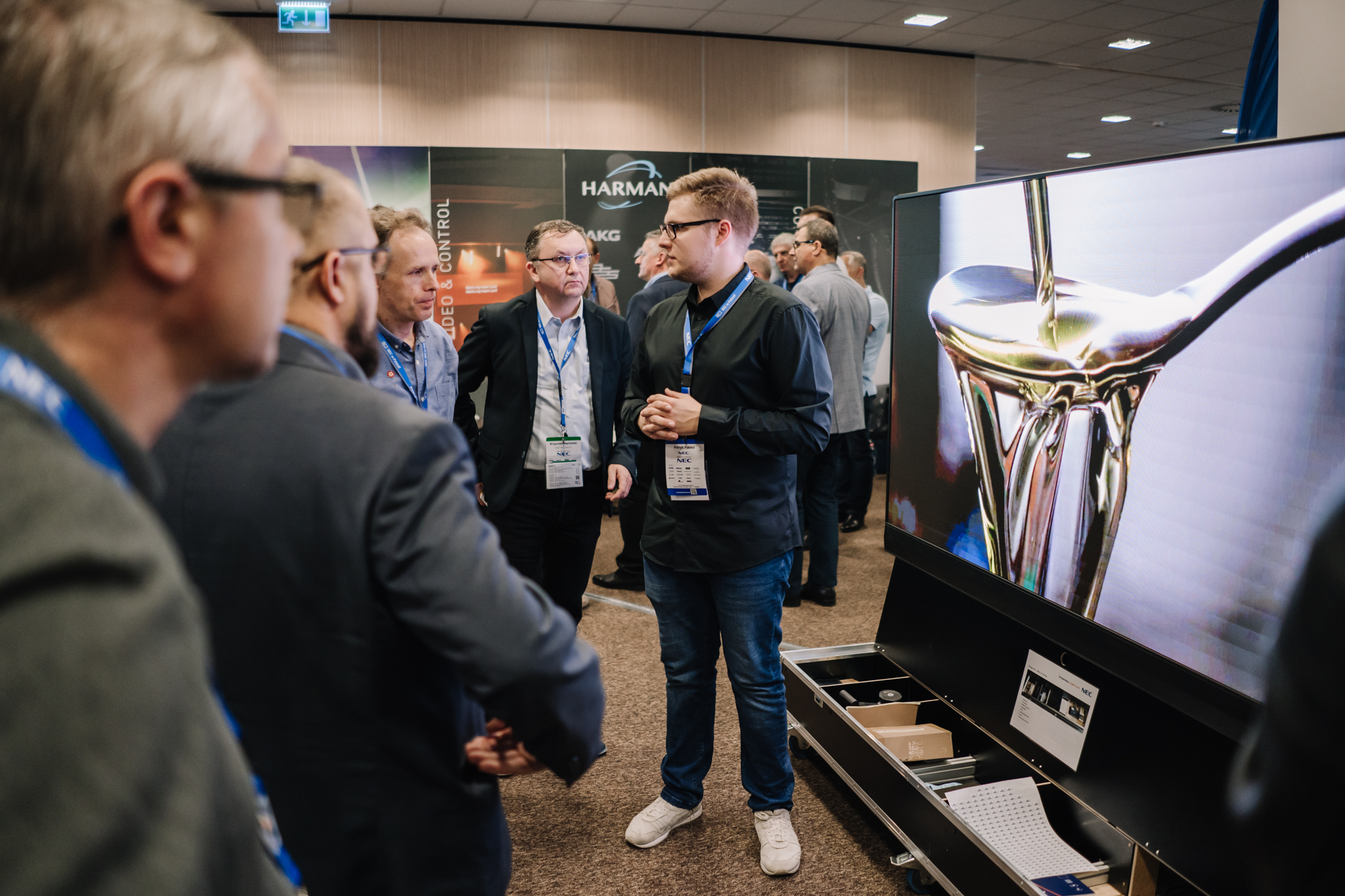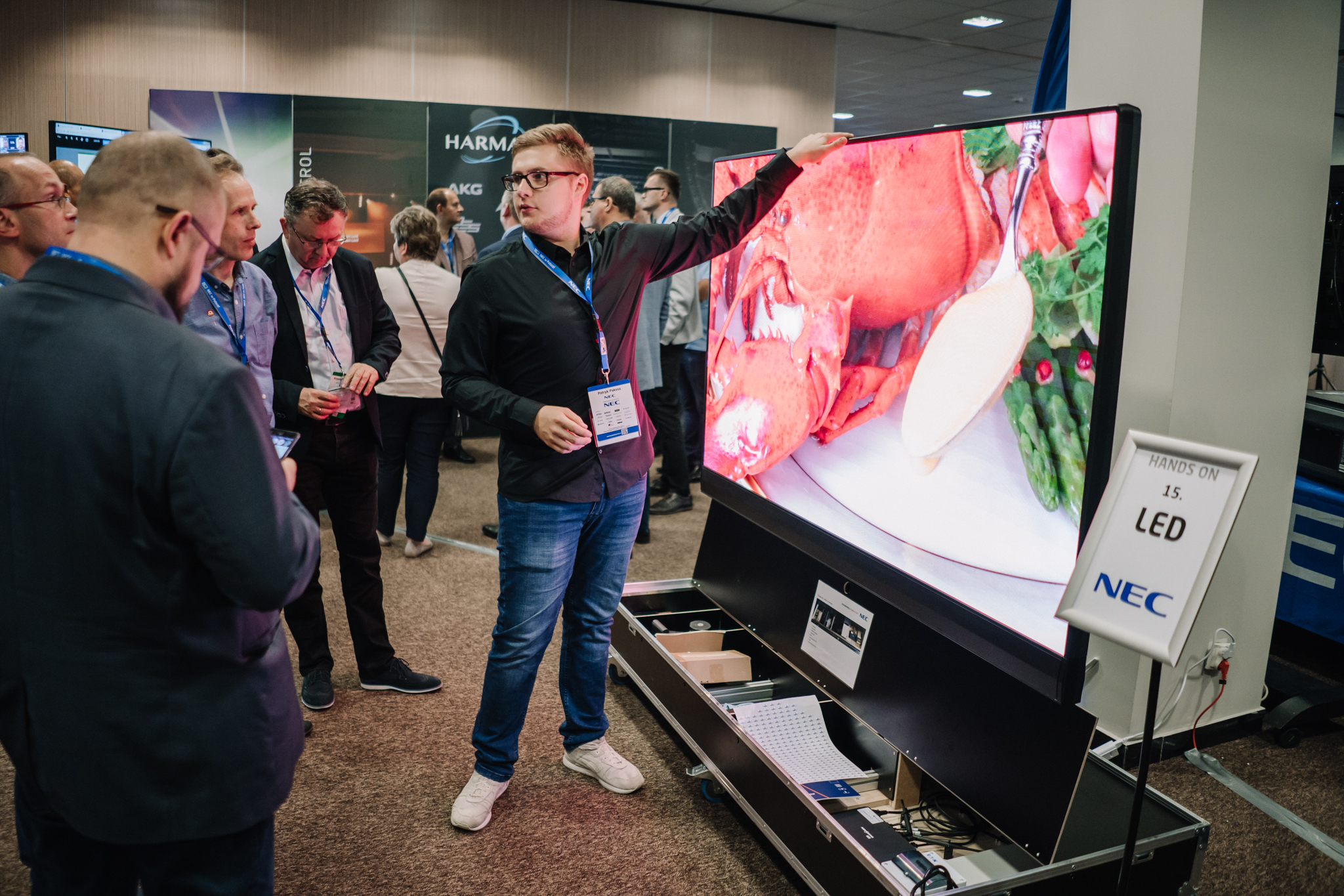Podczas konferencji NEC Display Solutions zaprezentował szerokie portfolio rozwiązań dedykowanych dla sektora AV i rynku meeting rooms, bazujących na monitorach, projektorach oraz produktach LED. Wśród nowości na szczególną uwagę zasługują: seria monitorów interaktywnych CB, nowy InfinityBoard 2.1 wyposażony w kamerę Huddly IQ, monitory do budowy ścian wideo z automatyczną kalibracją kolorymetryczną i niezwykle wąską ramką ekranu wynoszącą zaledwie 0.44mm oraz projektory laserowe LCD z opatentowanym, szczelnym silnikiem światła. Dodatkowo zaprezentowane zostało oprogramowanie ProAssist pozwalające na bardzo szczegółową kontrolę instalacyjnych projektorów NEC oraz ich adjustację kolorymetryczną – to szczególnie ciekawa nowość, której poświęcono osobny warsztat Hands On. Uczestnicy mogli zobaczyć również ekran wideo oparty o moduły LED p1.5 oraz cały przekrój monitorów wielkoformatowych NEC.