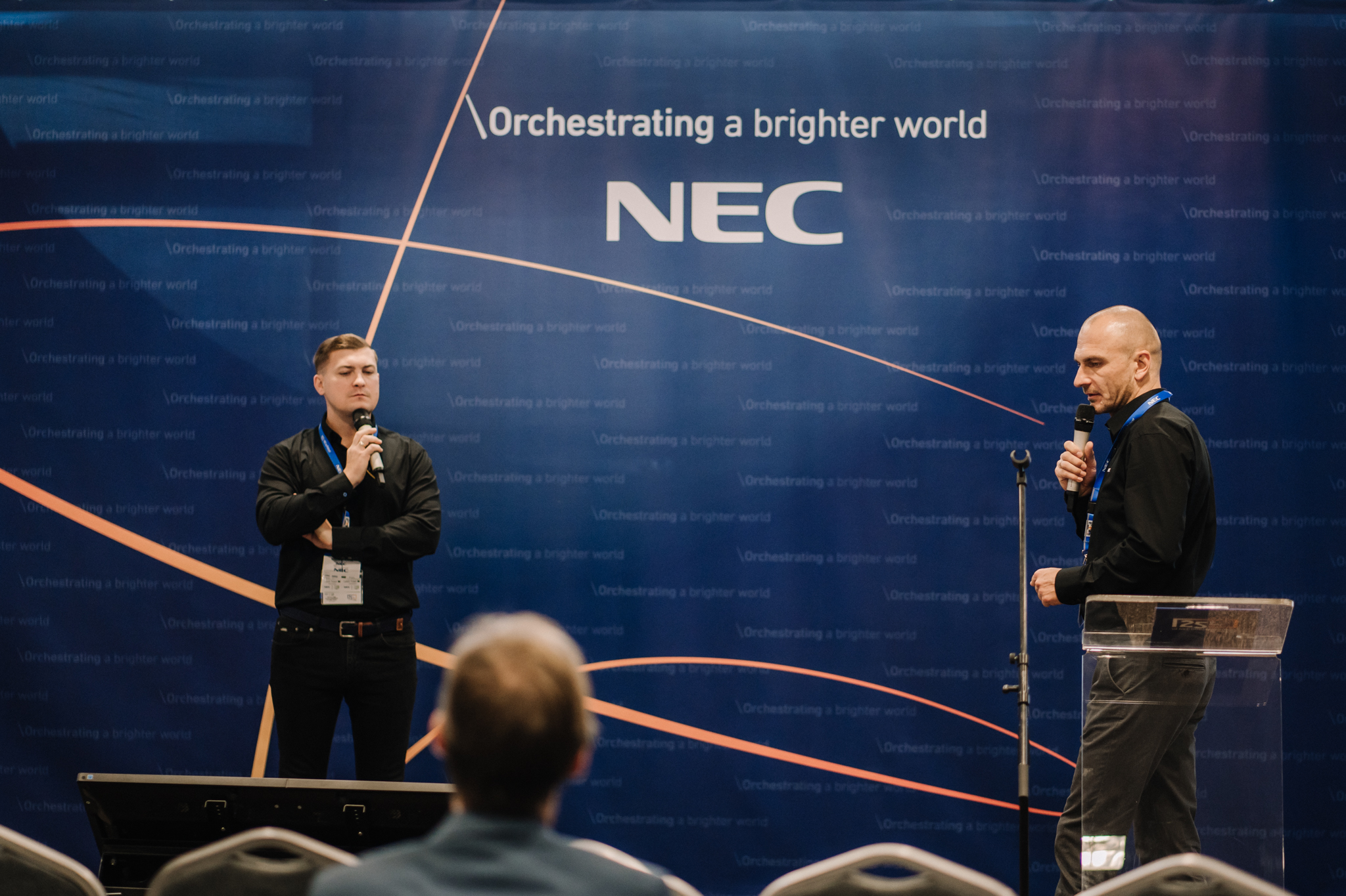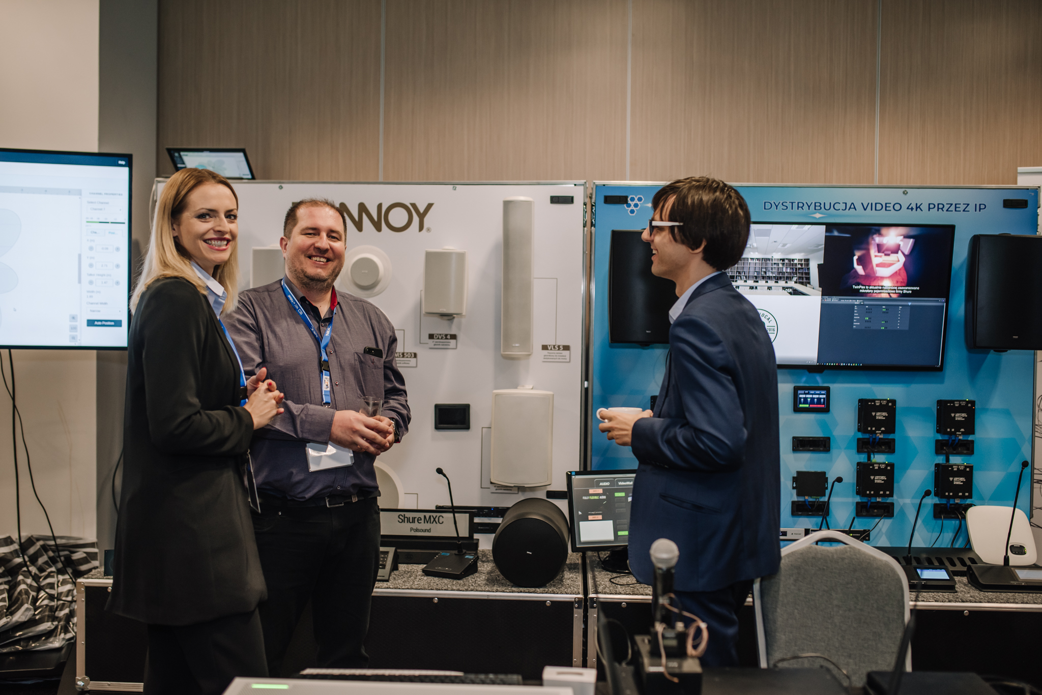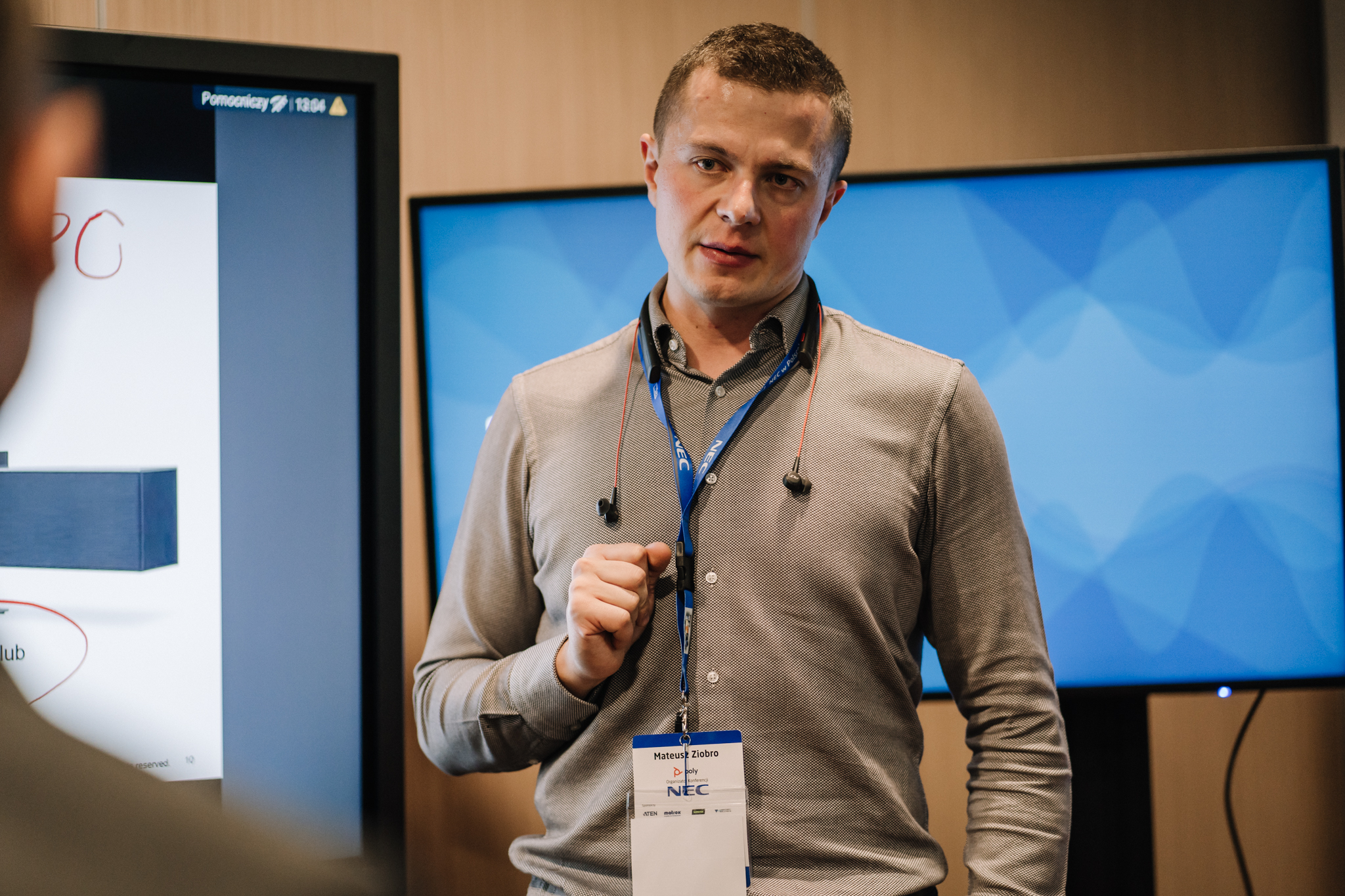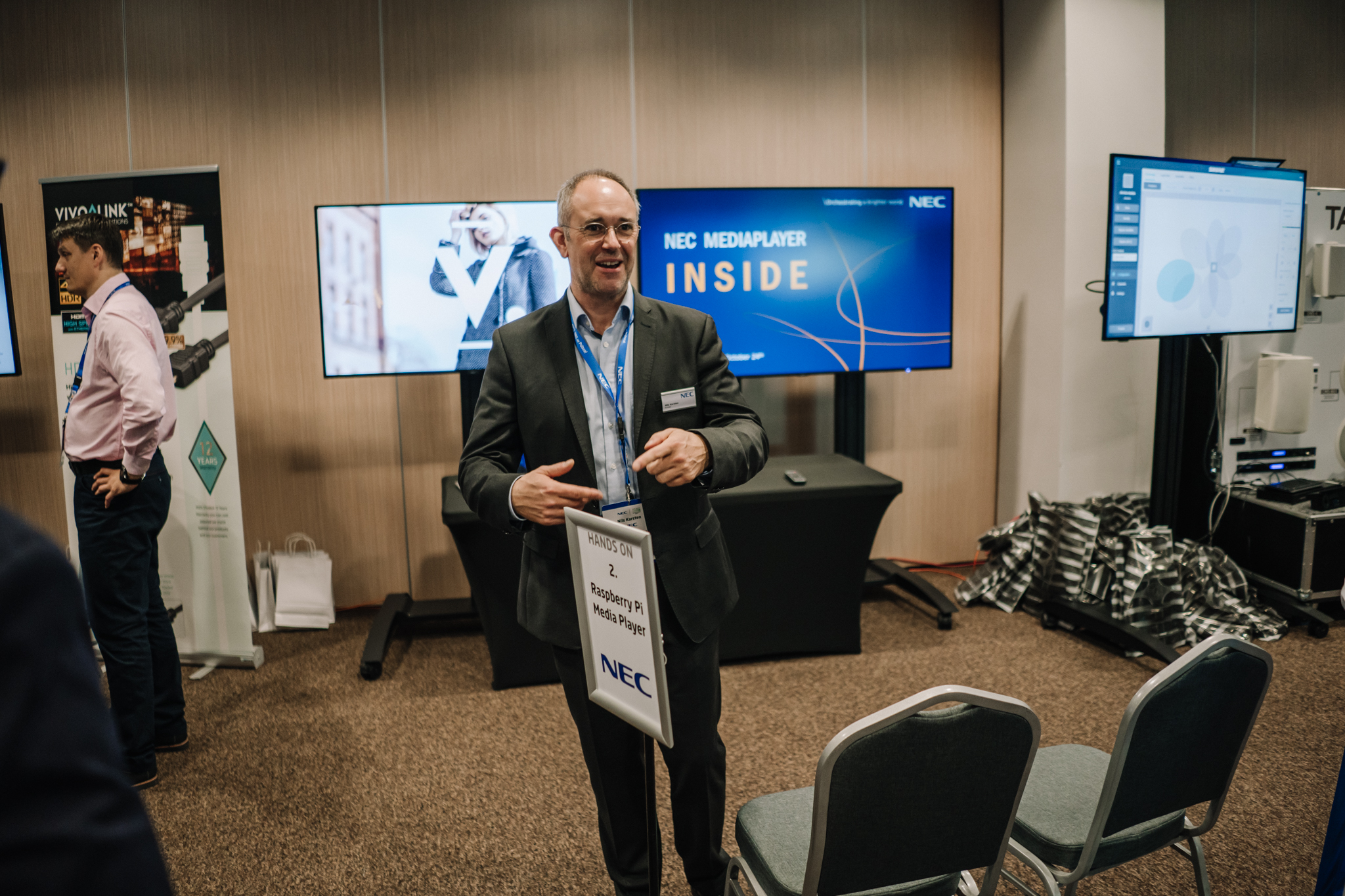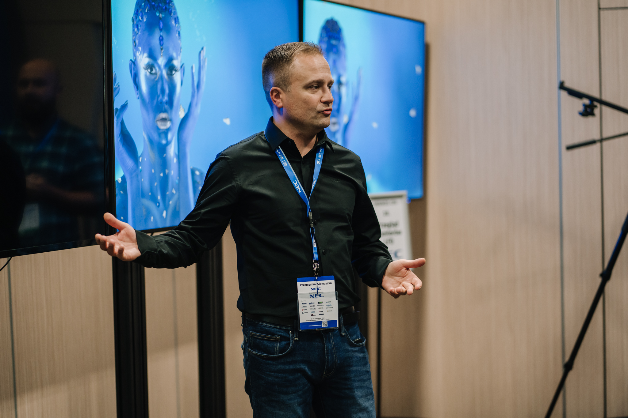 Podczas konferencji NEC Display Solutions zaprezentował szerokie portfolio rozwiązań dedykowanych dla sektora AV i rynku meeting rooms, bazujących na monitorach, projektorach oraz produktach LED. Wśród nowości na szczególną uwagę zasługują: seria monitorów interaktywnych CB, nowy InfinityBoard 2.1 wyposażony w kamerę Huddly IQ, monitory do budowy ścian wideo z automatyczną kalibracją kolorymetryczną i niezwykle wąską ramką ekranu wynoszącą zaledwie 0.44mm oraz projektory laserowe LCD z opatentowanym, szczelnym silnikiem światła. Dodatkowo zaprezentowane zostało oprogramowanie ProAssist pozwalające na bardzo szczegółową kontrolę instalacyjnych projektorów NEC oraz ich adjustację kolorymetryczną – to szczególnie ciekawa nowość, której poświęcono osobny warsztat Hands On. Uczestnicy mogli zobaczyć również ekran wideo oparty o moduły LED p1.5 oraz cały przekrój monitorów wielkoformatowych NEC.