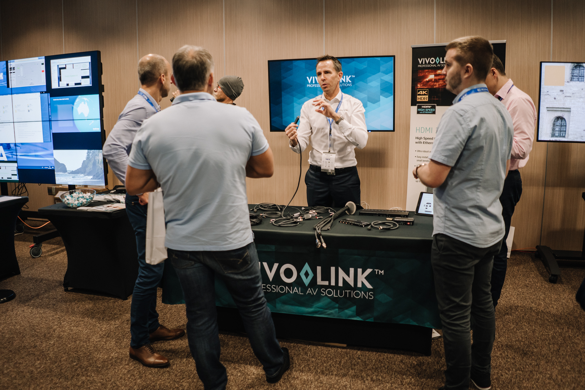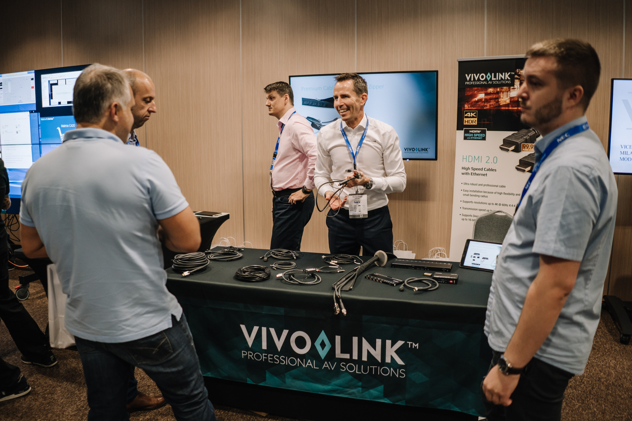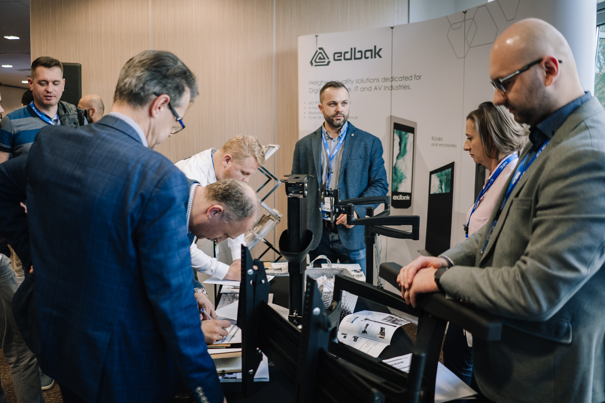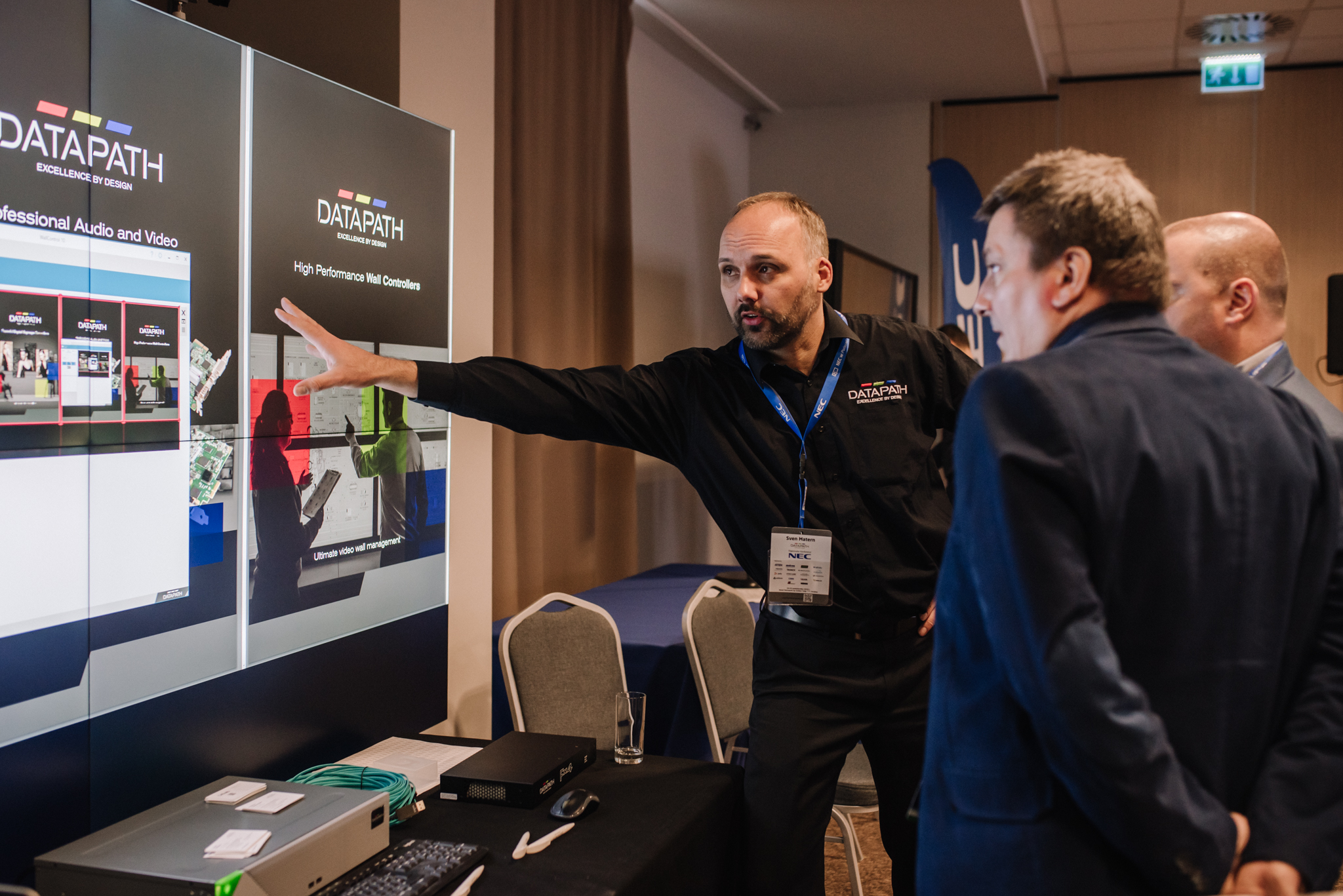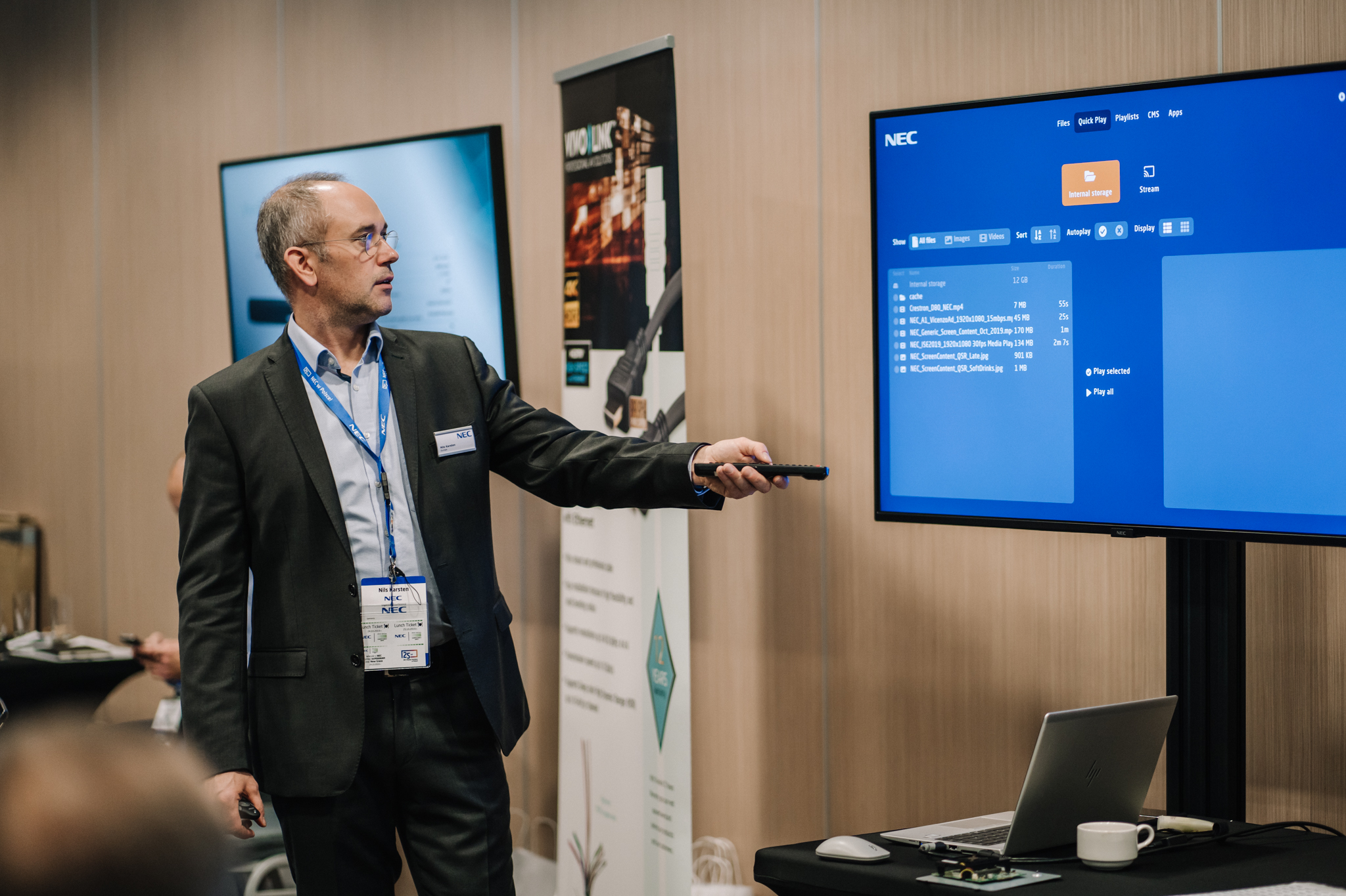 Podczas konferencji NEC Display Solutions zaprezentował szerokie portfolio rozwiązań dedykowanych dla sektora AV i rynku meeting rooms, bazujących na monitorach, projektorach oraz produktach LED. Wśród nowości na szczególną uwagę zasługują: seria monitorów interaktywnych CB, nowy InfinityBoard 2.1 wyposażony w kamerę Huddly IQ, monitory do budowy ścian wideo z automatyczną kalibracją kolorymetryczną i niezwykle wąską ramką ekranu wynoszącą zaledwie 0.44mm oraz projektory laserowe LCD z opatentowanym, szczelnym silnikiem światła. Dodatkowo zaprezentowane zostało oprogramowanie ProAssist pozwalające na bardzo szczegółową kontrolę instalacyjnych projektorów NEC oraz ich adjustację kolorymetryczną – to szczególnie ciekawa nowość, której poświęcono osobny warsztat Hands On. Uczestnicy mogli zobaczyć również ekran wideo oparty o moduły LED p1.5 oraz cały przekrój monitorów wielkoformatowych NEC.