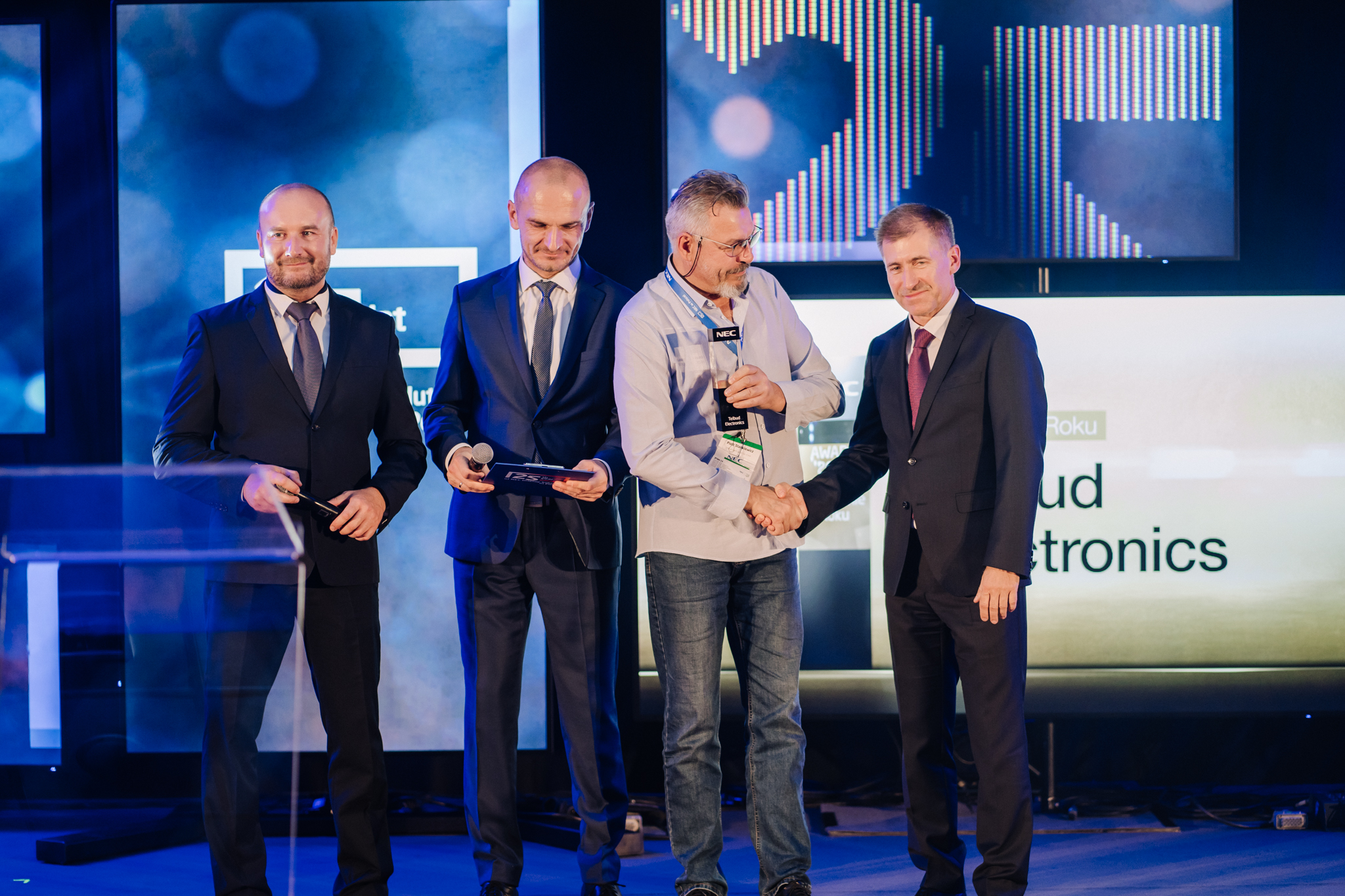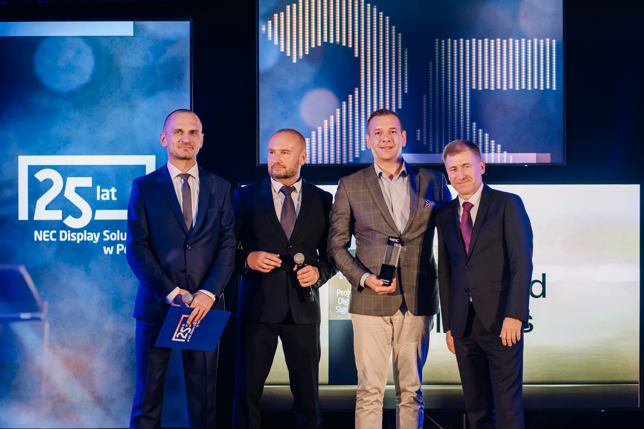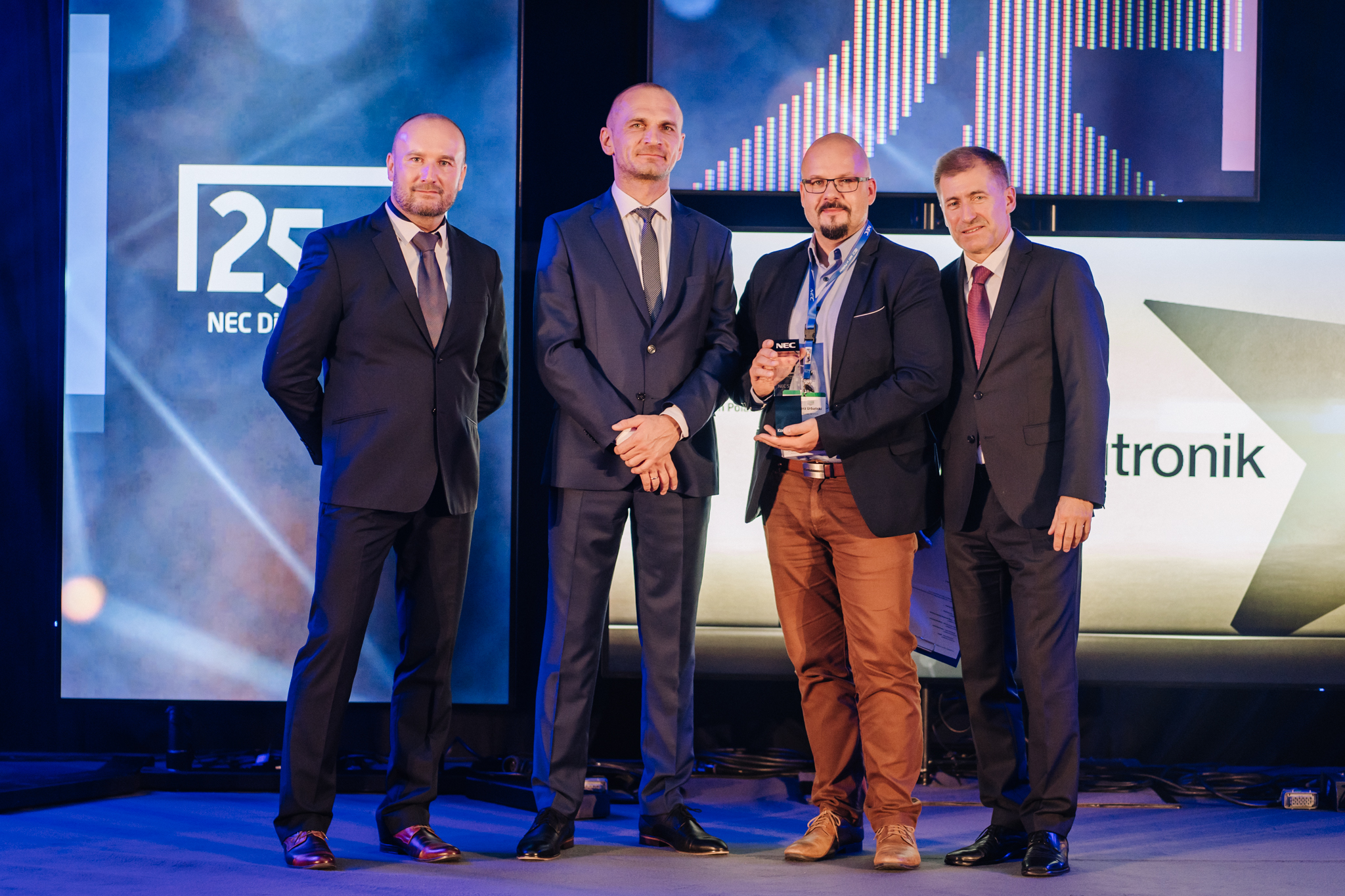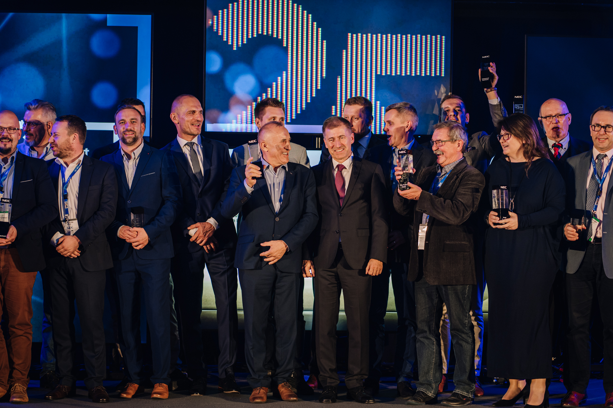Specjalna edycja NEC Competence Days nie mogła odbyć się bez specjalnego wieczoru, w trakcie którego świętowano potrójny jubileusz. Podczas uroczystej gali przyznano po raz drugi nagrody NEC Awards, które są wyrazem uznania dla Partnerów NEC Display Solutions i formą podziękowania im za roczne osiągnięcia i współpracę. Wyjątkowo, w ramach jubileuszowej edycji, przyznano również specjalne statuetki NEC STAR dla firm i osób, które uhonorowano za podsumowanie całościowej współpracy z NEC Display Solutions w Polsce na przestrzeni 25 lat.