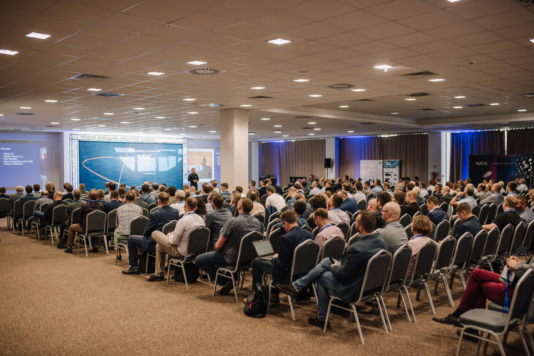 Konferencja NEC Competence Days odbyła się po raz pierwszy w nowoczesnej przestrzeni hotelu Metropolo by Golden Tulip, gdzie do dyspozycji gości oddano prawie 800 m2 specjalnej strefy Expo, w której odbywały się pokazy najnowszych produktów i rozwiązań z sektora AV i meeting rooms. Spotkanie pełne było też merytorycznych prezentacji na najwyższym poziomie, jak również potężnej dawki praktycznej wiedzy przekazywanej uczestnikom m.in. w trakcie aż 15 sesji warsztatowych Hands On! Były to pokazy działania poszczególnych rozwiązań prowadzone dla małych grup uczestników, z możliwością testowania sprzętu i prowadzenia dyskusji.